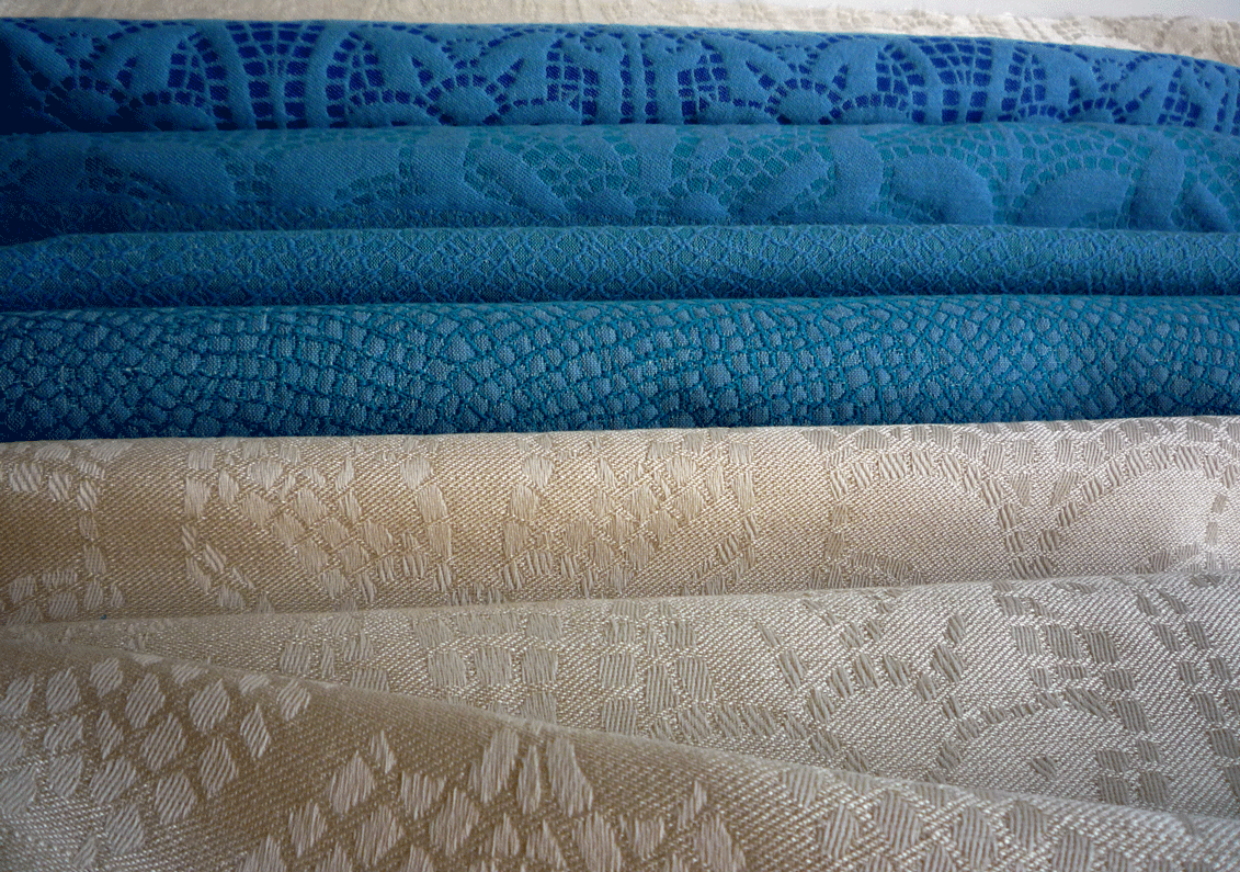 Selection of fabrics woven on the jacquard loom - Cotton warp with wool or silk weft.